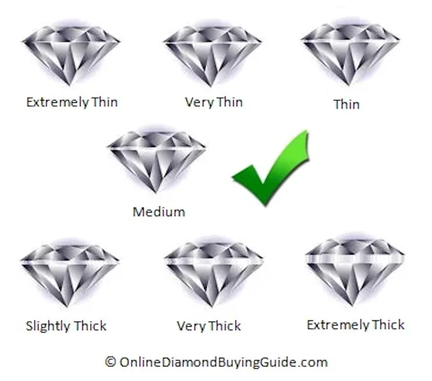 Girdles can be unfinished, polished, faceted, or bruted (this last one only applies to diamonds, as it refers to part of the initial shaping phase of diamond faceting where two rough diamonds are ground together to create the outline of the girdle).